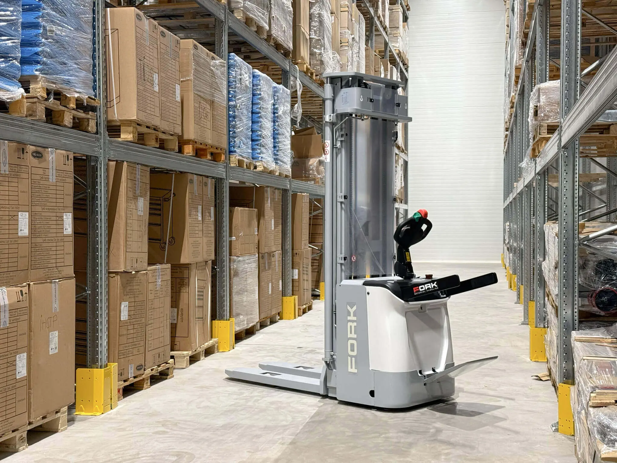 Electric stackers are designed for efficient warehouse operations where quick movement of goods and precise handling are essential. They significantly reduce operator strain, while the integrated platform allows the operator to travel with the machine, making long-distance movement in warehouses and logistics centres easier and more efficient.